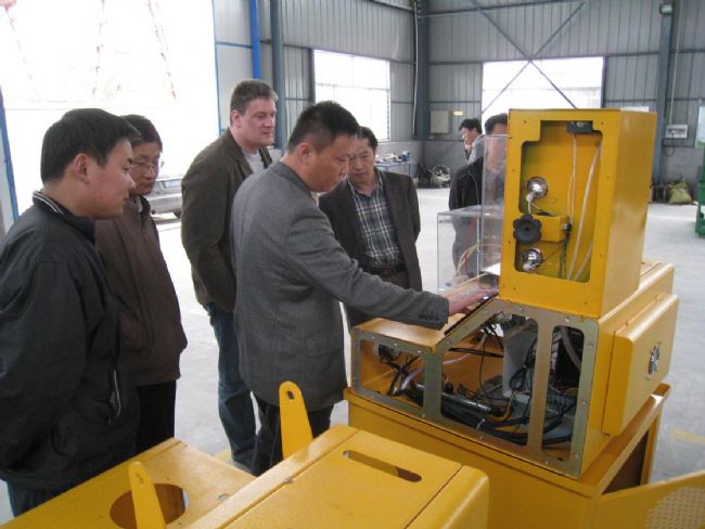 圖二、外商正在調(diào)校CRI-200型高壓共軌噴油器試驗(yàn)設(shè)備